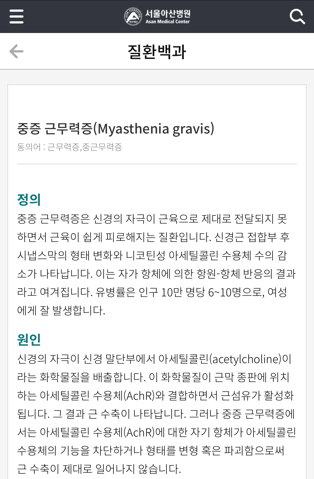 - 약물 복용 주의: 특정 항생제나 근육이완제, 부정맥 치료제 등은 증상을 악화시킬 수 있습니다. 다른 질환으로 병원 방문 시 반드시 중증 근무력증 환자임을 알려야 합니다.
