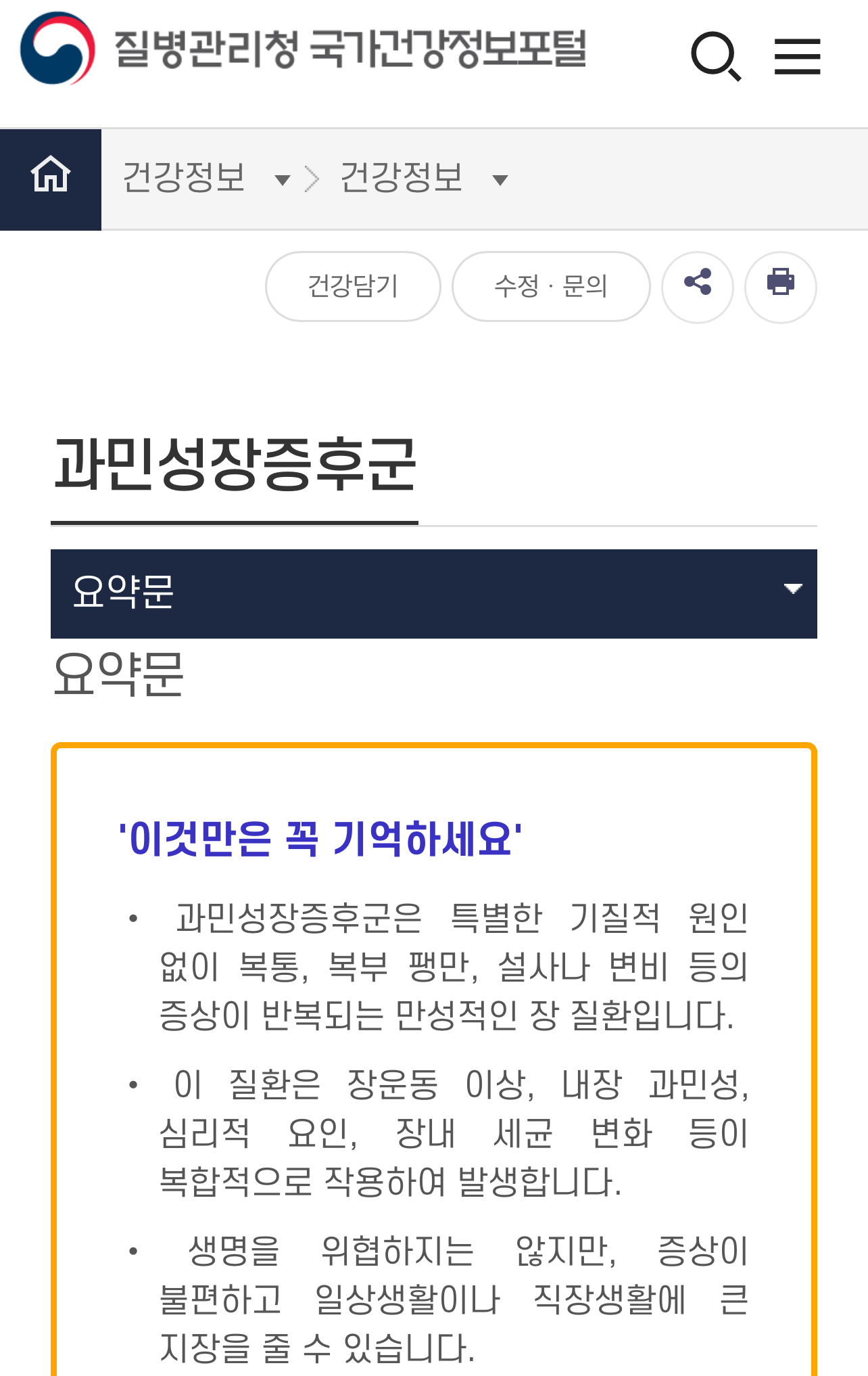 핵심 포인트: 과민성 대장 증후군은 생명에 지장을 주는 질환은 아니지만 삶의 질을 크게 떨어뜨립니다. 하지만 혈변, 의도치 않은 체중 감소, 심한 복통 등의 경고 증상이 함께 나타난다면 반드시 대장내시경 검사를 받아 대장암과 같은 심각한 질환이 아닌지 확인해야 합니다[6][9].